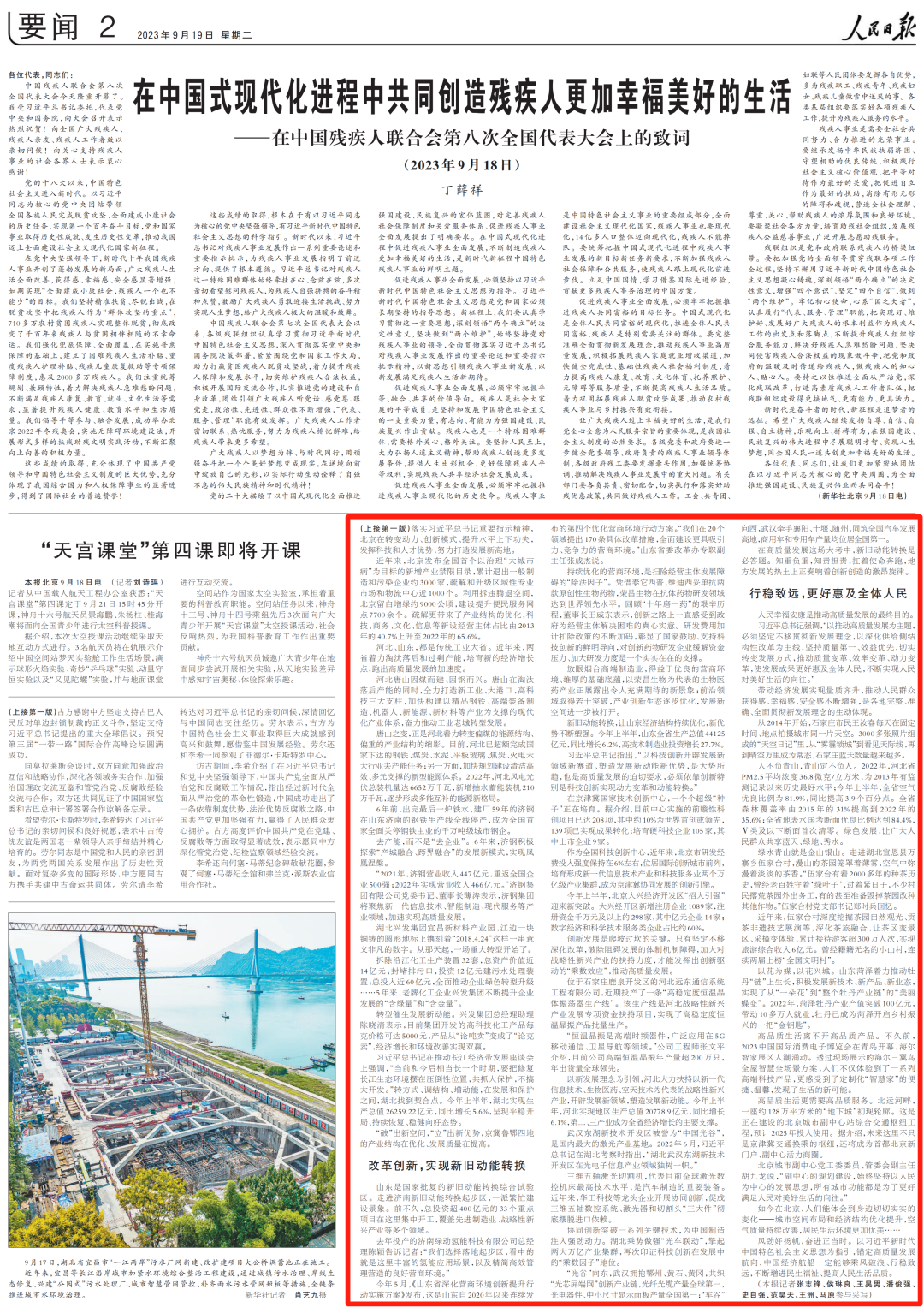 2023年9月19日出版的《人民日报》头版综述稿中,报道起步区动能转换和产业项目招引工作有关案例。