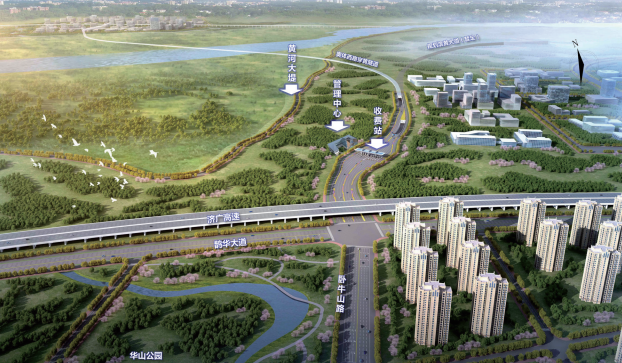 项目线路全长约5.6公里,位于黄河大桥复线与石济客专公铁两用桥之间,距离上游黄河大桥复线桥3.6公里,距离下游石济客专1.5公里。将采用盾构方式一次性穿越黄河左岸大堤、河槽、右岸大堤,盾构段长度3303米,隧道外径16.8米,内径15.4米。工程采用100年一遇洪水标准设计。